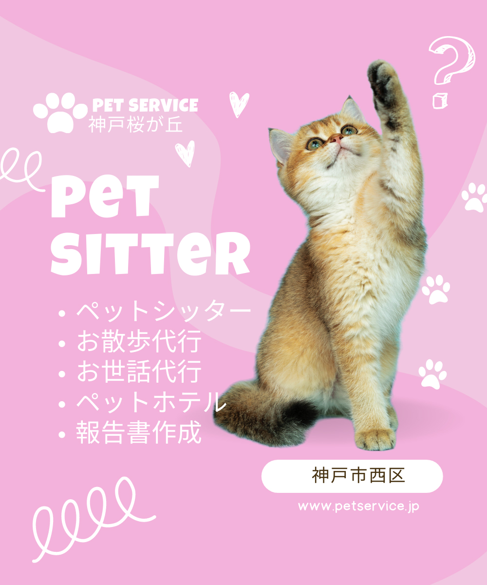 ペットシッターの営業エリアについてご案内します。神戸市西区桜が丘よりお伺いさせて頂きます。